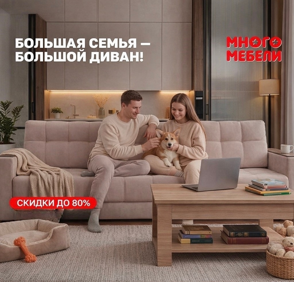 В Много Мебели найдётся идеальный диван для всей семьи — и для пушистых друзей