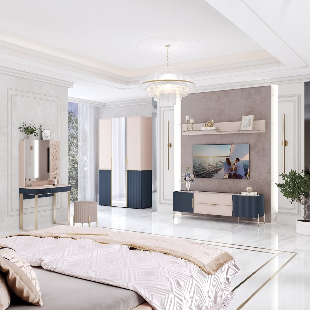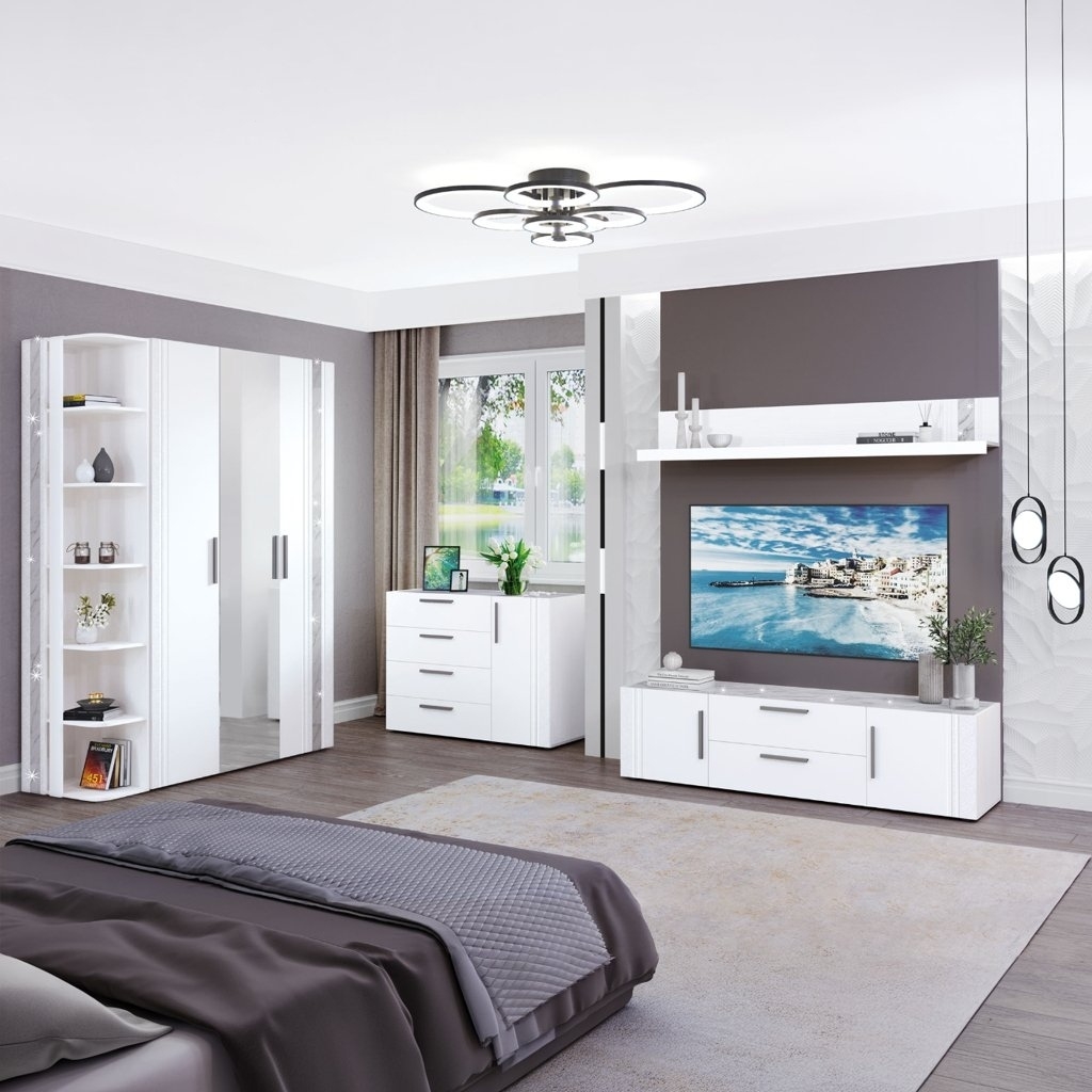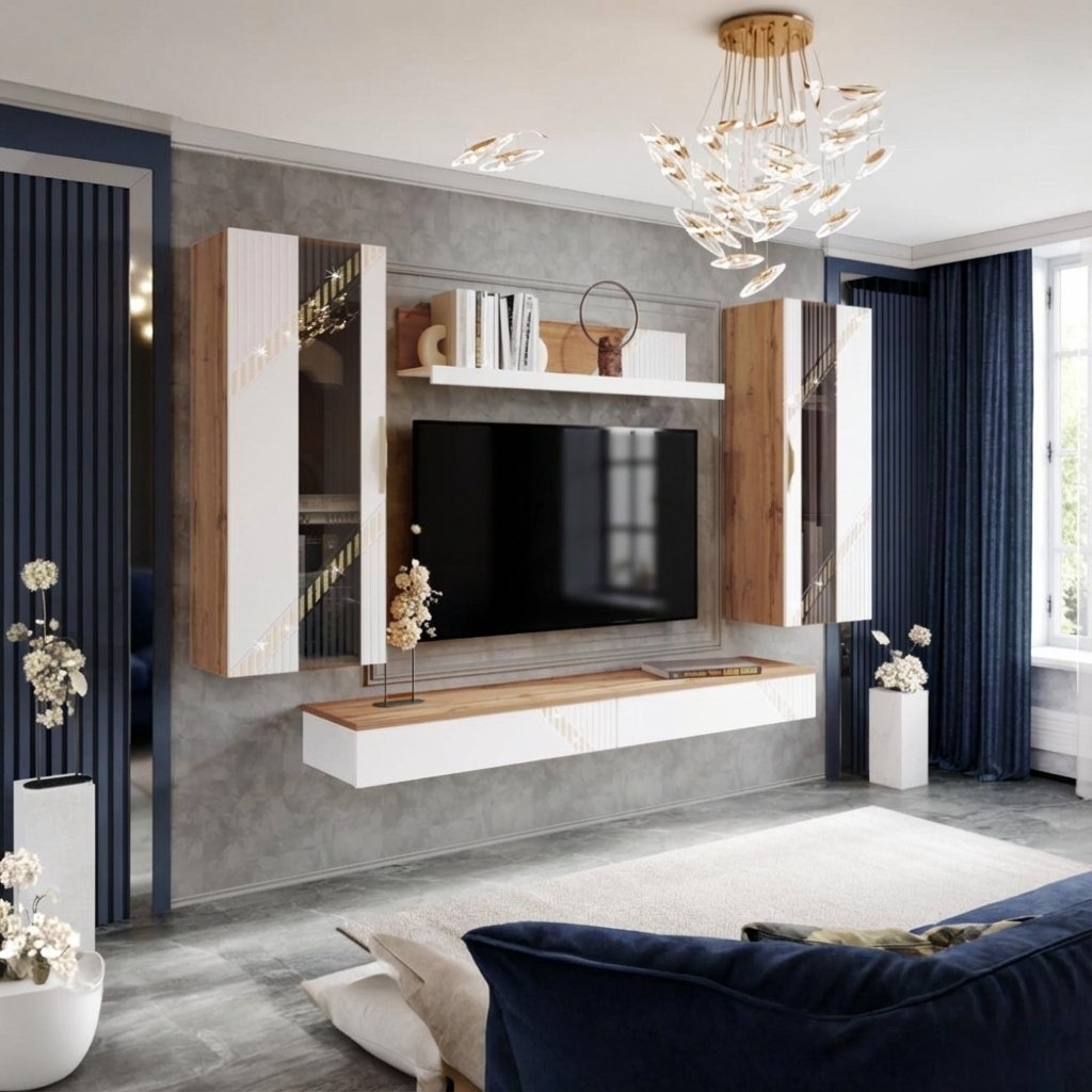 Продумайте хранение — тумбы и полки помогут аккуратно разместить технику, книги и декор.