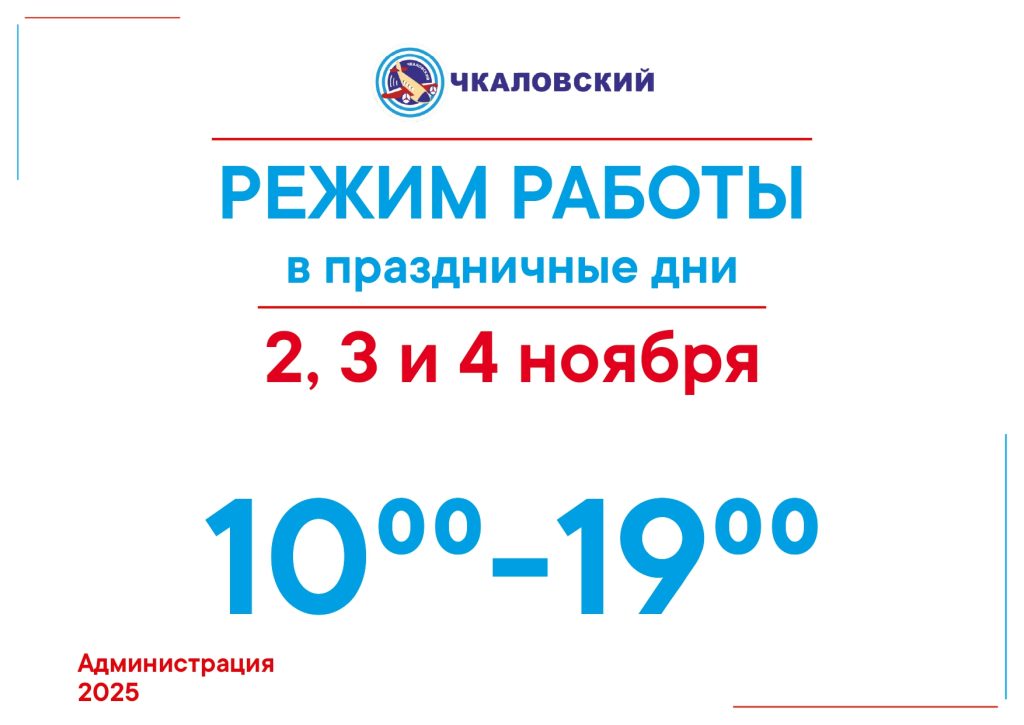 Обращаем ваше внимание на режим работы ТЦ «Чкаловский»: